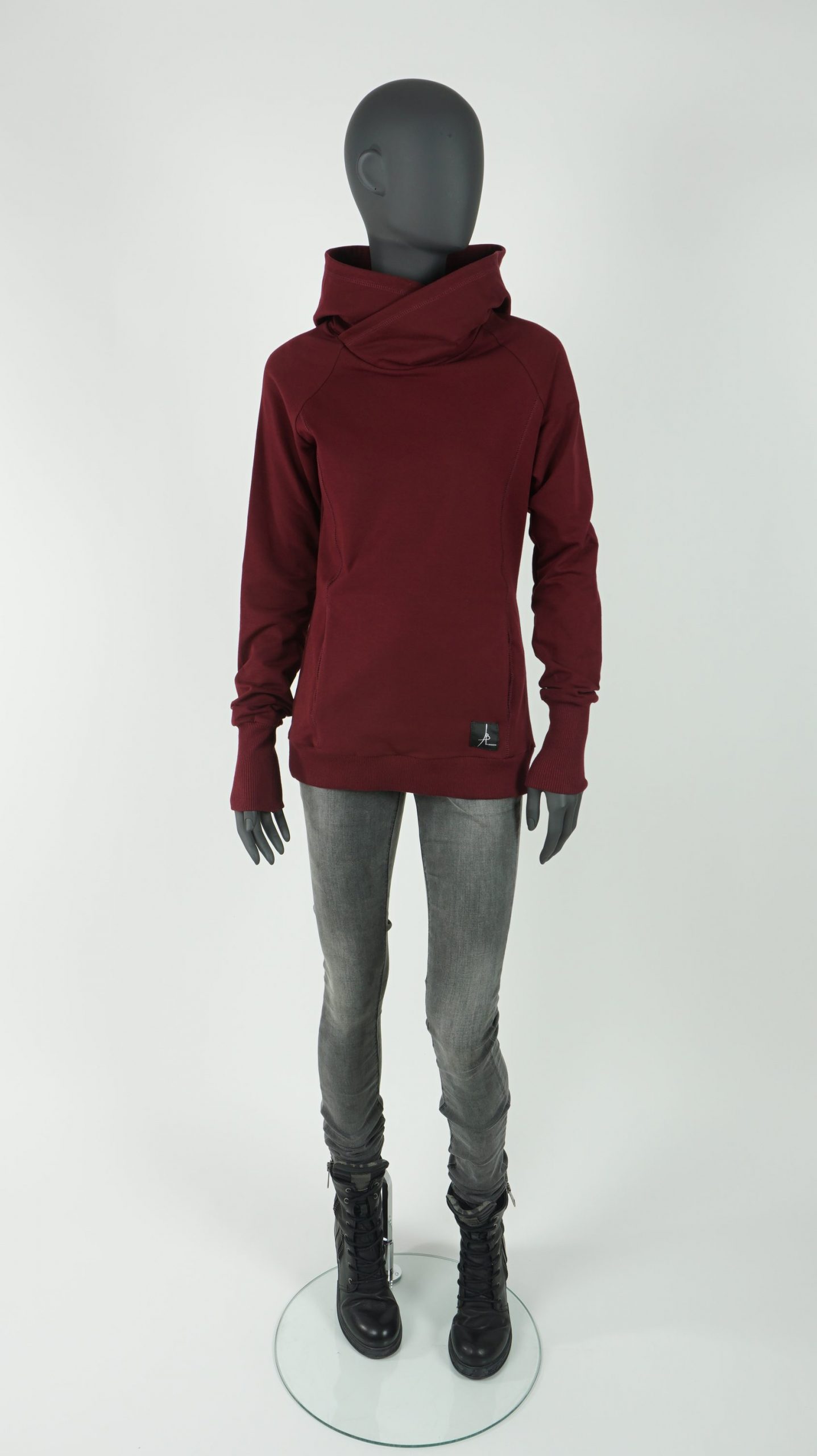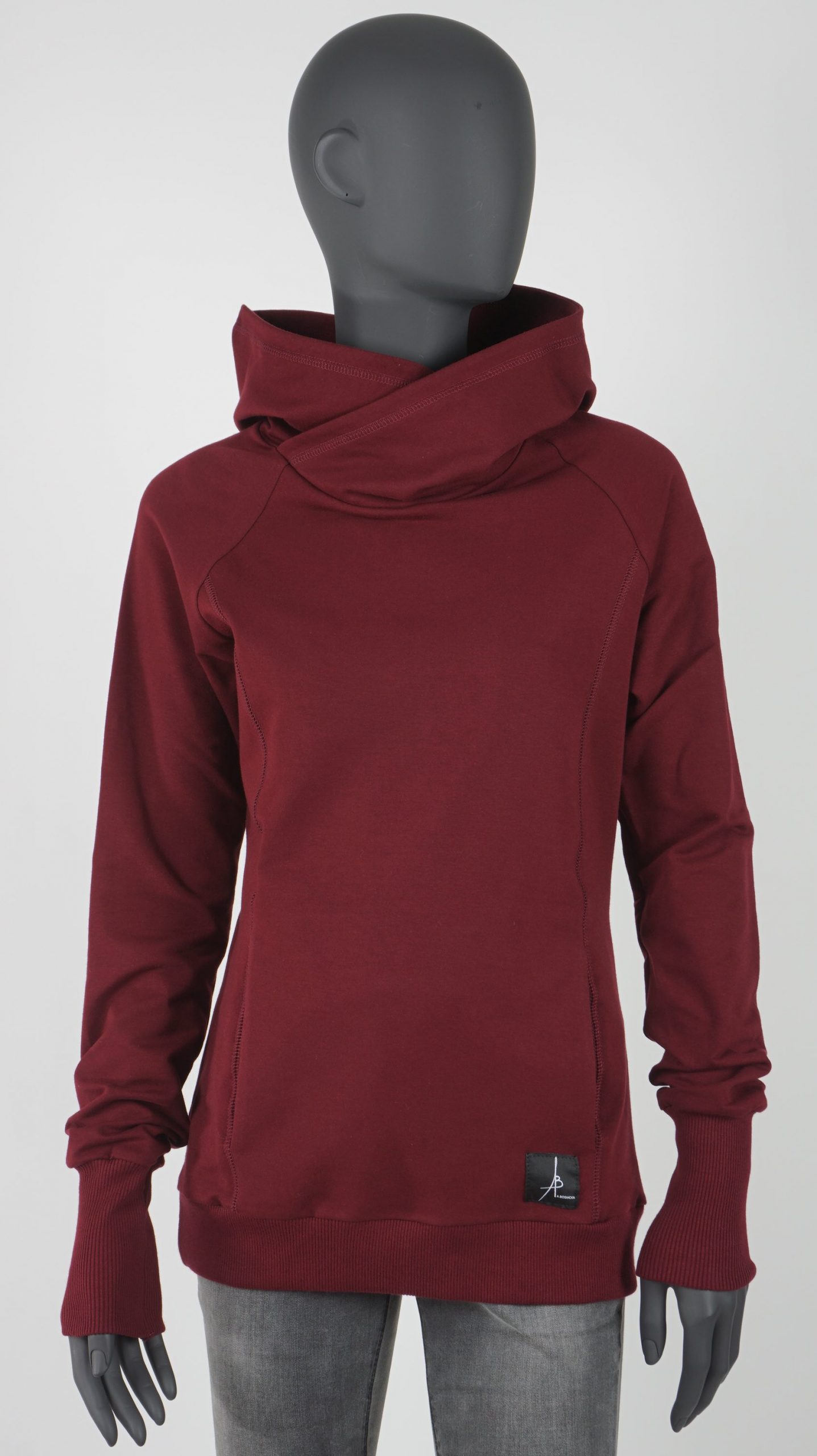 Bluza z kapturem z dzianiny dresowej – bordo.