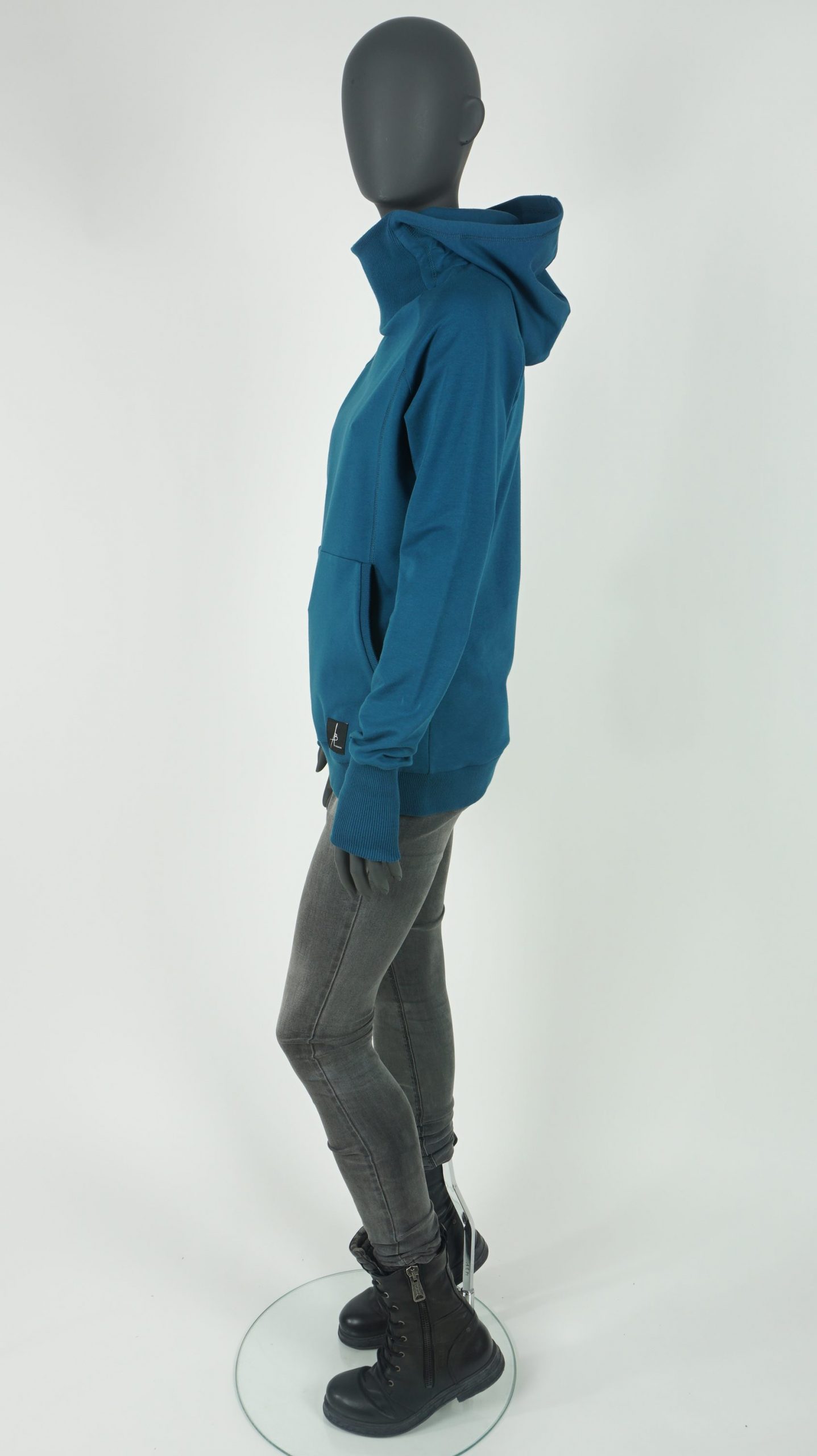 Bluza z kapturem z dzianiny dresowej – turkus.