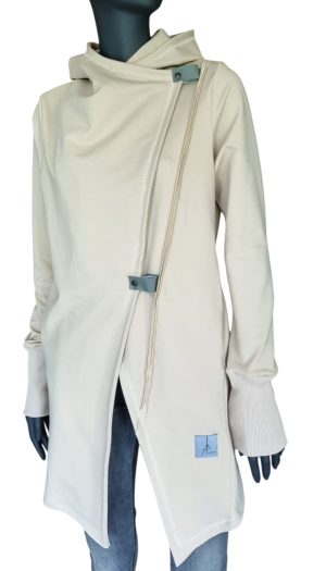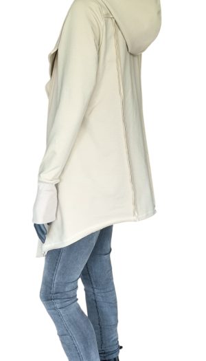 Kardigan asymetryczny z kapturem z dzianiny dresowej – czarny.