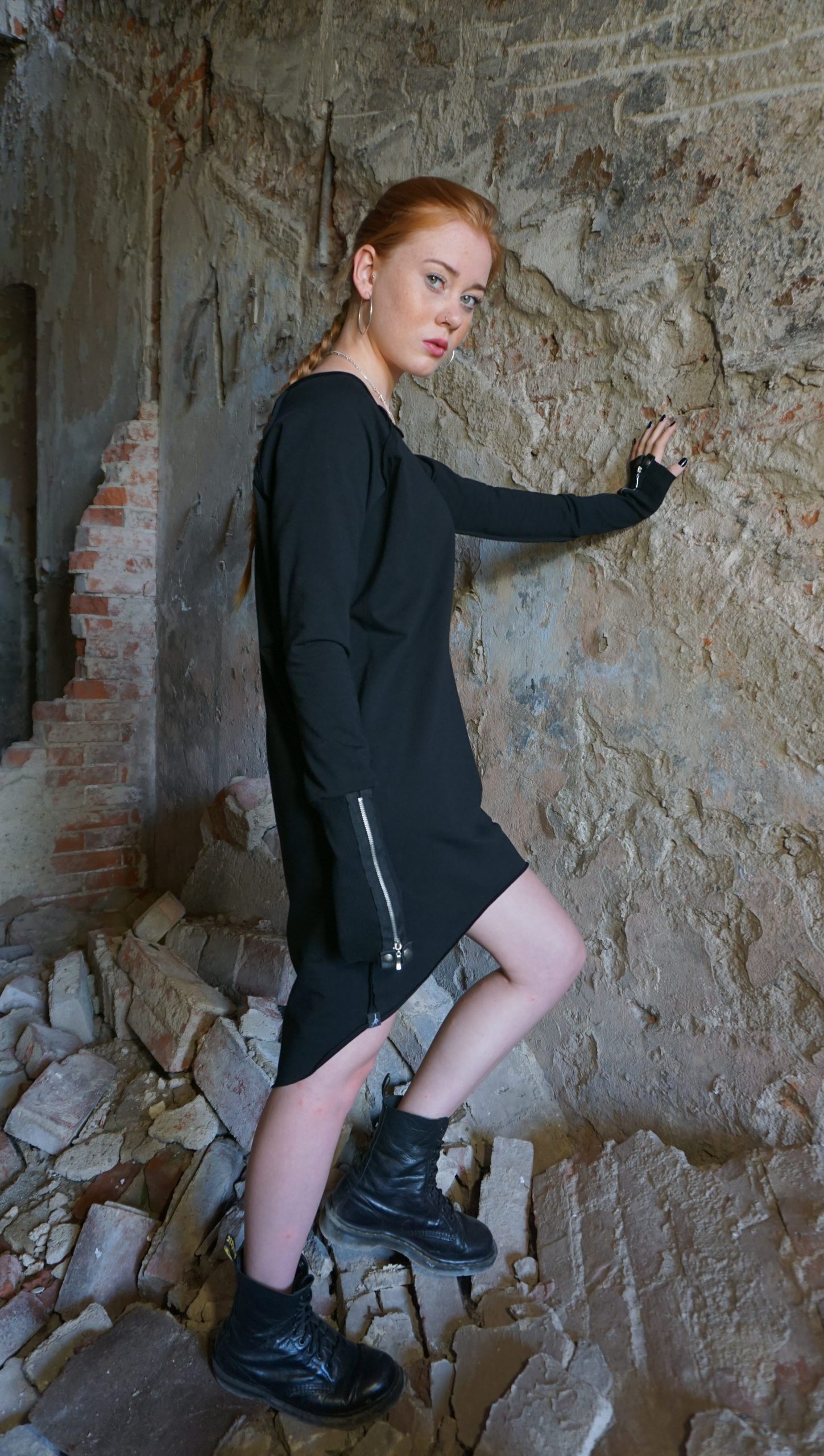 Sukienka asymetryczna, oversize z dzianiny dresowej czarnej.