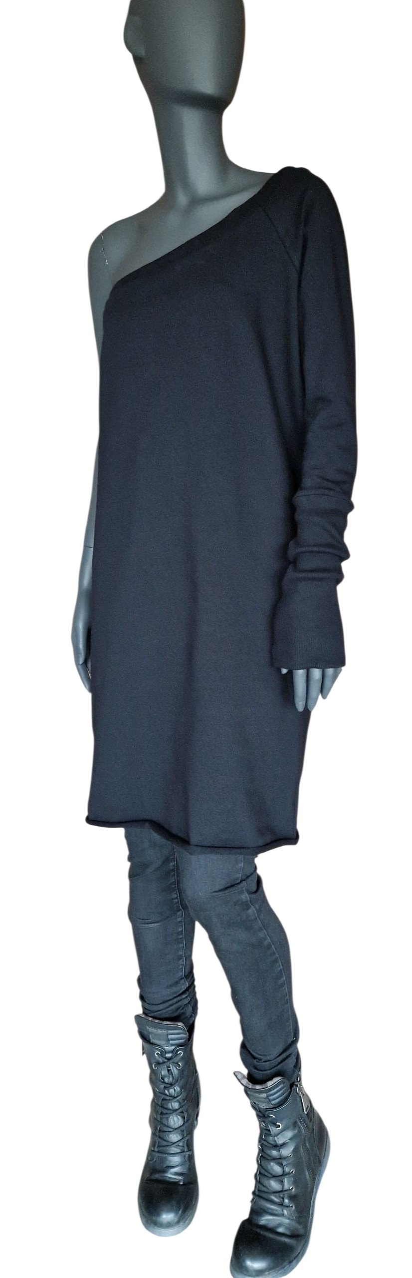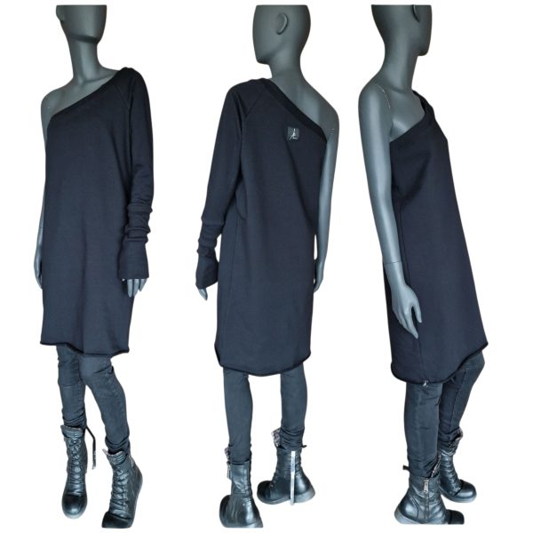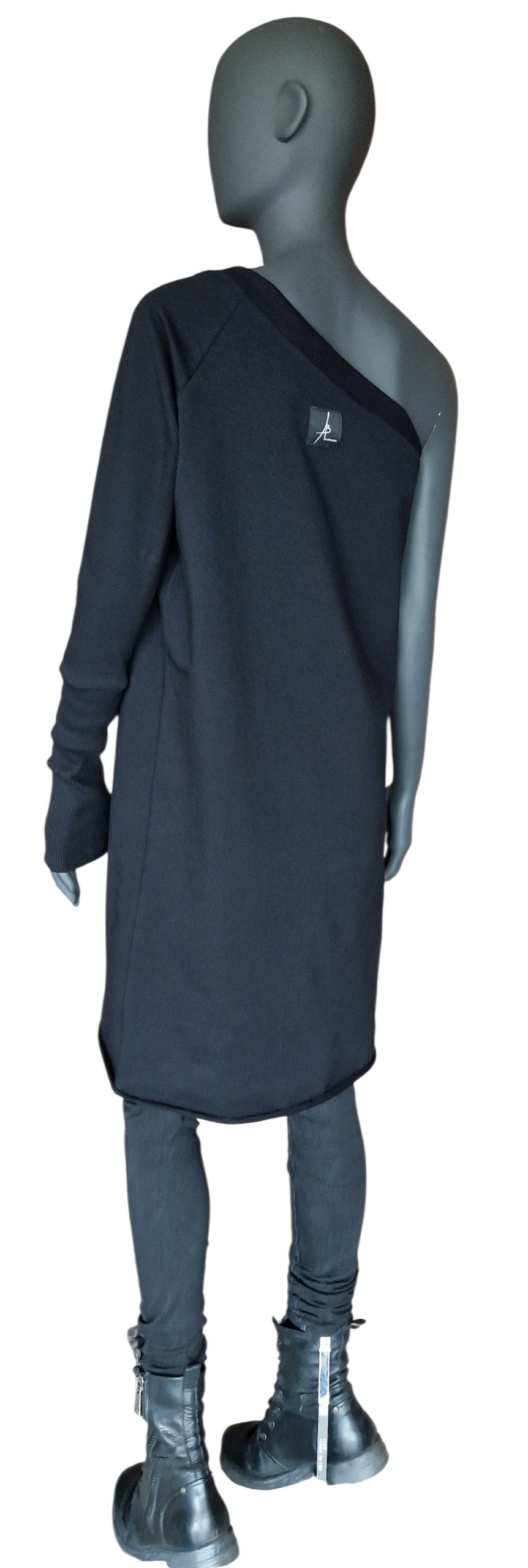 Sukienka z jednym rękawem z dzianiny dresowej czarnej.